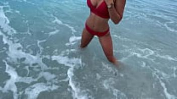 Naked, big-boobs cam girl on a public beach Augirls.live