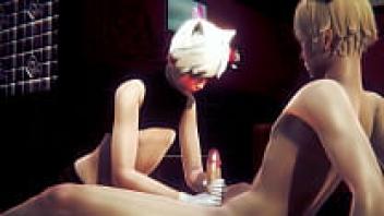 Hentai Busty Blonde Girl Handjob & Blowjob in 3D Porn Anime