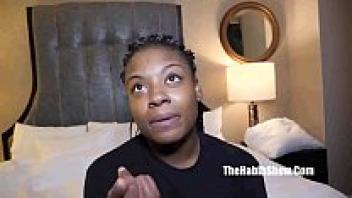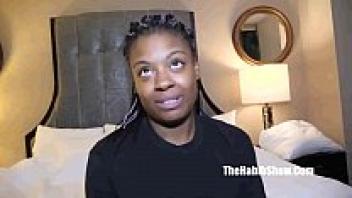 To get booked, a naughty 18-year-old Ebony hottie is willing to suck a big cock producer.