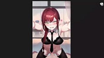 Squirting and moaning Makima, Power Cowgirl, and Missionary Sex POV with Creampie