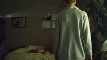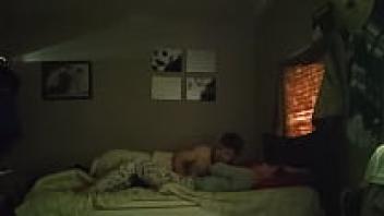Melody Teen, a young and scrawny Spanish model, loving on Kevin White when they are in bed together