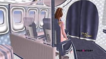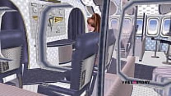 A Cute Girl on an Aeroplane Fingering Her Pussy and Assholes - 3D Animated Cartoon Porn