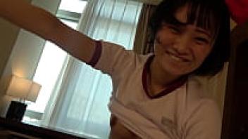 Uncensored, 18-year-old, gorgeous, large breasts with black hair. Suzu-chan dressed in gym attire. creampie sex with shaved pussy.