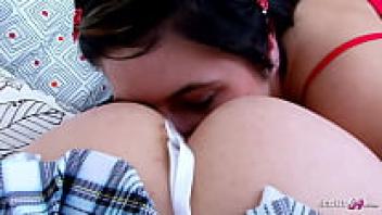 Cute Teens lick each other and play with Dildo until explosive orgasm.