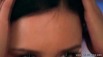 Stunning brunette babe blowing her hair onto your face