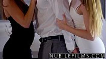 Teenager sucks the jizz of babes who have their pussies hammered in NubileFilms