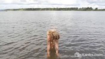 The amateur babe Sara is being masturbated by Yanks.