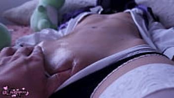 An oily, slender, and small girl experiencing a genuine orgasm as a woman