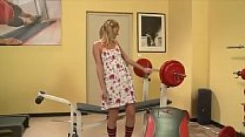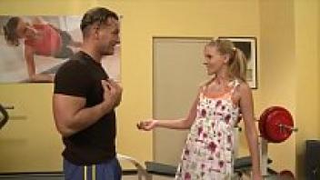 In a gym, a naughty adolescent was given a lot of love by her trainer.