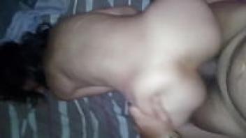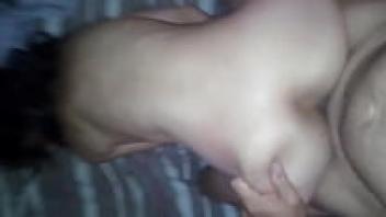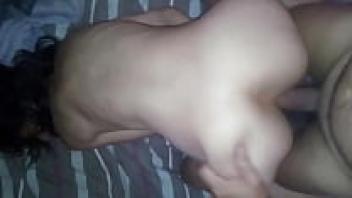 At the same time as he pounded the small girl's ass, he spat on the dick.