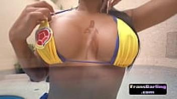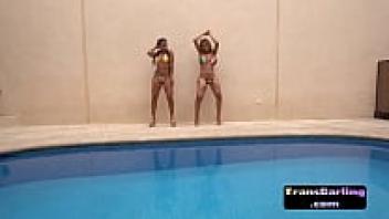 Transsexual Latina beauty shares a large cock with babe.