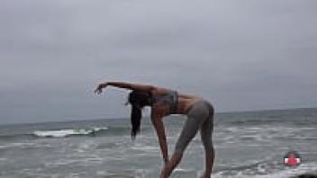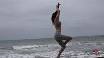 A Japanese fitness model takes pleasure in the dog-style pose.