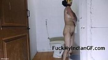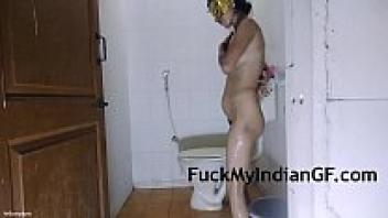 Taking a shower with a hairy, pussy Indian babi