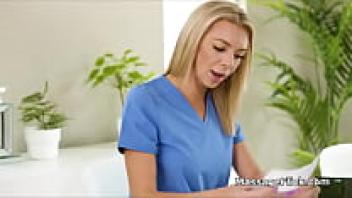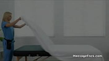 In order to alleviate stress, the masseuse offers me a full-body massage that is oily and includes forceful pussy fingering.