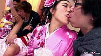 Three adorable JAV teenagers with hairy pussies in a rare Japanese organisation