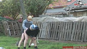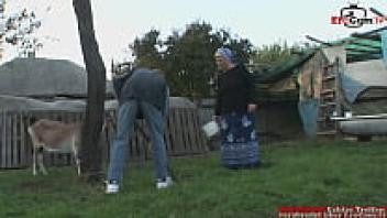 Granny, who wears spectacles and is chubby and blonde, loves being outside.