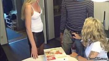 Blonde Mature enjoys watching pornographic content with her stepson.