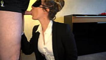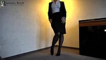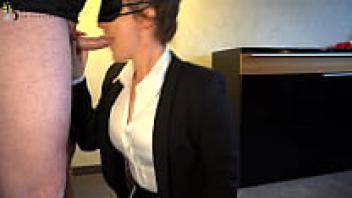 Blowjobs and frontal sex with sperm blasted in her face were performed by a gorgeous office assistant wearing stockings—a business-bitch