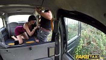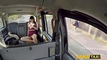 A sexy Mexican woman gets sperm on her glasses in a fake taxi.